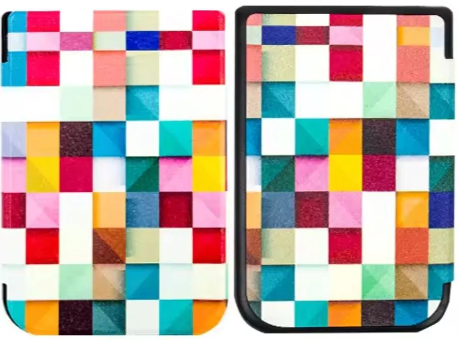 Pouzdro má magnetické zavírání. Celkové rozměry a hmotnost jsou velice kompaktní a téměř přesně kopírují rozměry čtečky. Pouzdro samozřejmě nabízí funkci automatického usínání / probouzení čtečky podle toho, jak pouzdro otevřete nebo zavřete. Přední desky lze otočit o 360° a pouzdro tedy držet pohodlně v jedné ruce. Pouzdro je v motivu Square s jemnou povrchovou úpravou. K dispozici je široká nabídka dalších barevných provedení.