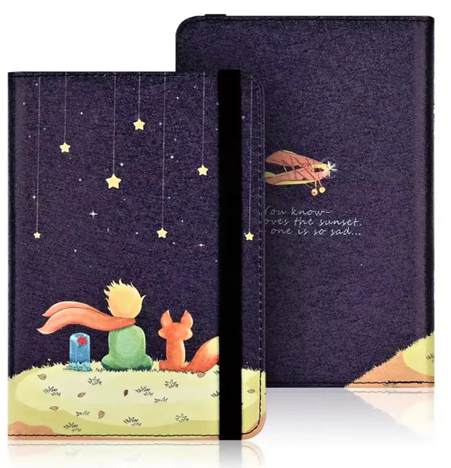 Kvalitní univerzální pouzdro ARMORI, řada Wraper - pro čtečky knih s úhlopříčkou displeje 5-6". Obal nabízí pevné uchycení pomocí 4 gumových úchytů a potažení jemnou umělou kůží s povrchem z mikrovlákna a navíc také praktickou kapsu na ruku. S touto povrchovou úpravou je pouzdro dobře omyvatelné a především netrpí na olupování nebo trhání koženého povrchu. Obal se příjemně drží a neklouže v ruce. Výběr je z mnoha motivů a barev. Tato varianta je v motivu Little Prince. Pouzdro je tenké, pevné, se zavíracím mechanismem pomocí gumového pásku. Má kvalitní povrchovou úpravu z mikrovlákna, která se dobře udržuje. Zároveň jsou přístupné všechny ovládací prvky, čtečku tedy není nutné vyndávat z pouzdra. Pro držení v jedné ruce lze využít praktickou kapsu na ruku. Rozměry pouzdra jsou 175 x 120 mm.
