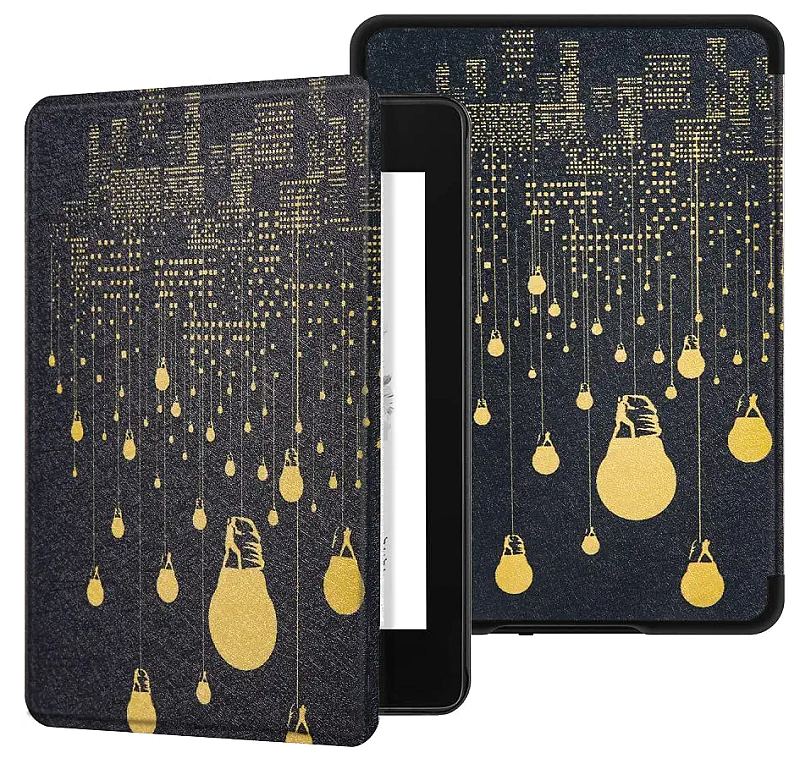 Pouzdro má magnetické zavírání. Celkové rozměry a hmotnost jsou velice kompaktní a téměř přesně kopírují rozměry čtečky. Pouzdro samozřejmě nabízí funkci automatického usínání / probouzení čtečky podle toho, jak pouzdro otevřete nebo zavřete. Přední desky lze otočit o 360° a pouzdro tedy držet pohodlně v jedné ruce. Pouzdro je barevné, s celoplošným potiskem, motiv Lights, s jemnou povrchovou úpravou. K dispozici je široká nabídka dalších barevných provedení.
