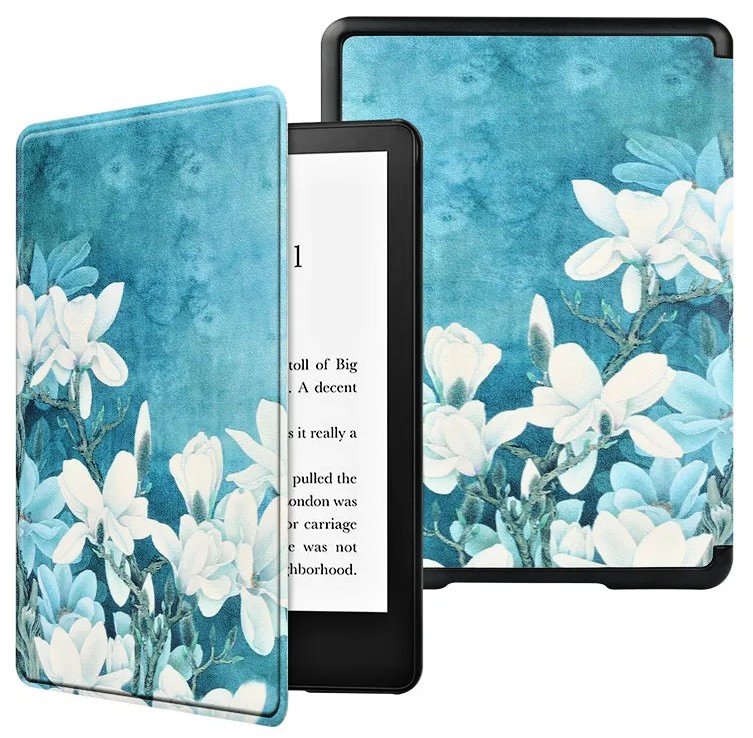 Pouzdro má magnetické zavírání. Celkové rozměry a hmotnost jsou velice kompaktní a téměř přesně kopírují rozměry čtečky. Pouzdro samozřejmě nabízí funkci automatického usínání / probouzení čtečky podle toho, jak pouzdro otevřete nebo zavřete. Přední desky lze otočit o 360° a pouzdro tedy držet pohodlně v jedné ruce. Pouzdro je barevné, s celoplošným potiskem, motiv Icy Garden, s jemnou povrchovou úpravou. K dispozici je široká nabídka dalších barevných provedení.