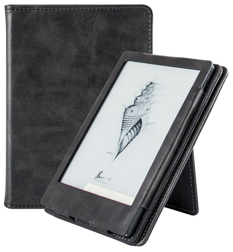 Specialita tohoto pouzdra je výklopný stojánek. Stojánek drží magneticky. Vnitřní strana pouzdra je potažena semišem, který velmi dobře chrání displej před poškrábáním a vnějšími vlivy. Zaručený komfort a spolehlivá ochrana čtečky, kterou rychle a bezpečně vložíte do vnitřního úchytu. Přední kryt je otočný o 360°, což umožňuje příjemné a pohodlné čtení v jedné ruce. Stačí jen otevřít a překlopit. Zavírání na magnet zabraňuje náhodnému otevření.