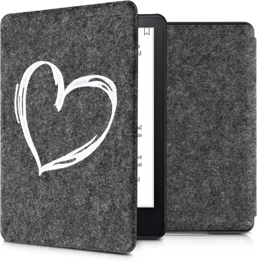 Vlastnosti pouzdra KW MOBILE pro Amazon Kindle Paperwhite 5 (2021), motiv Felt Brushed Heart (tmavě šedé):