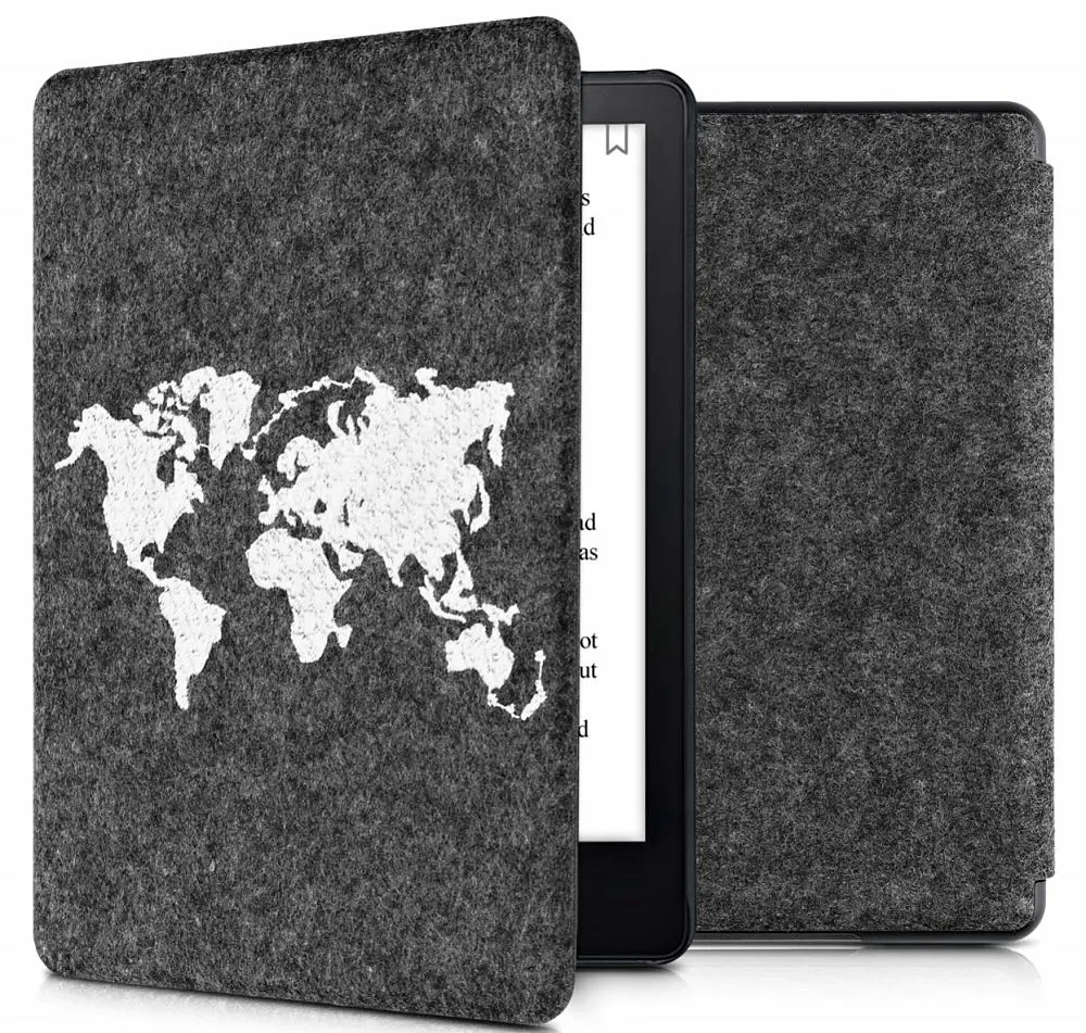 Vlastnosti pouzdra KW MOBILE pro Amazon Kindle Paperwhite 5 (2021), motiv Felt Travel Outline (tmavě šedé):