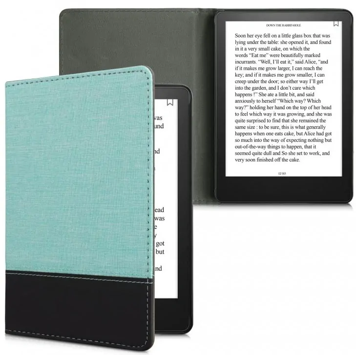 Pouzdro KW Mobile - Leather And Canvas - KW5715771 - pro Amazon Kindle Paperwhite 5 (2021) - tyrkysové, černé