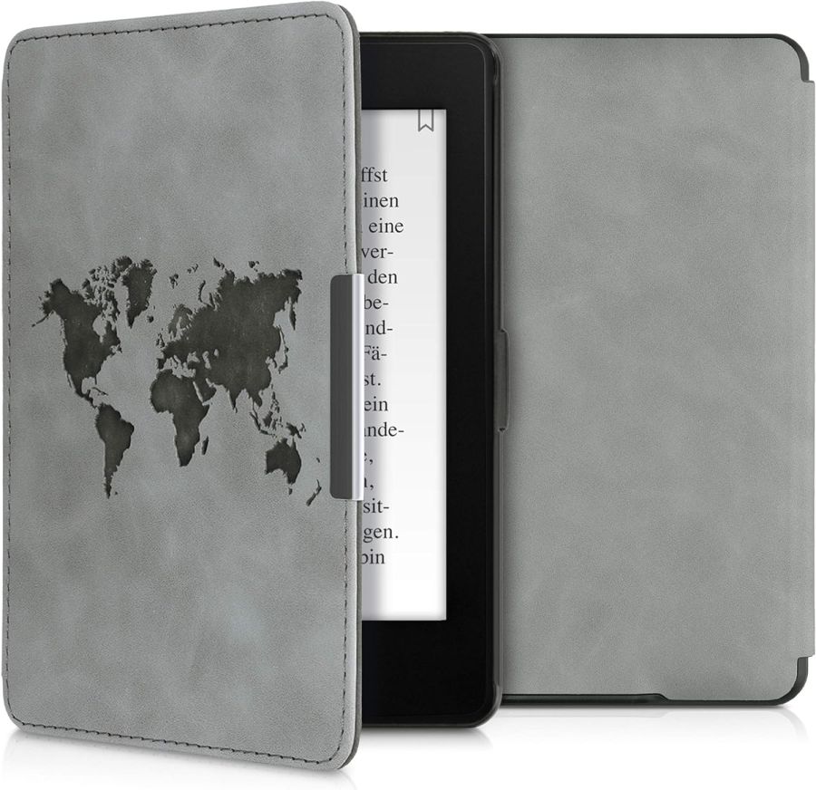 Vlastnosti pouzdra KW MOBILE pro Amazon Kindle Paperwhite 1/2/3, motiv Travel Outline (šedá):